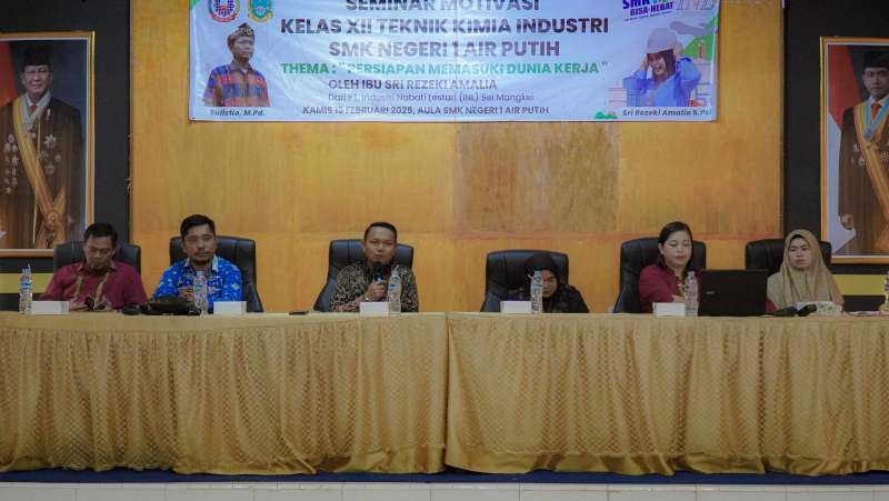 SMK Negeri 1 Air Putih kembali mengadakan kegiatan inspiratif bagi siswa kelas XII, khususnya jurusan Kimia Industri. Kali ini, sekolah menghadirkan narasumber dari PT. Industri Nabati Lestari (INL) Sei Mangkei, Ibu Sri Rezeki Amalia, S.Psi., yang merupakan Staf HRD di PT. Industri Nabati Lestari dan memberikan seminar motivasi bertemakan Persiapan Memasuki Dunia Kerja.